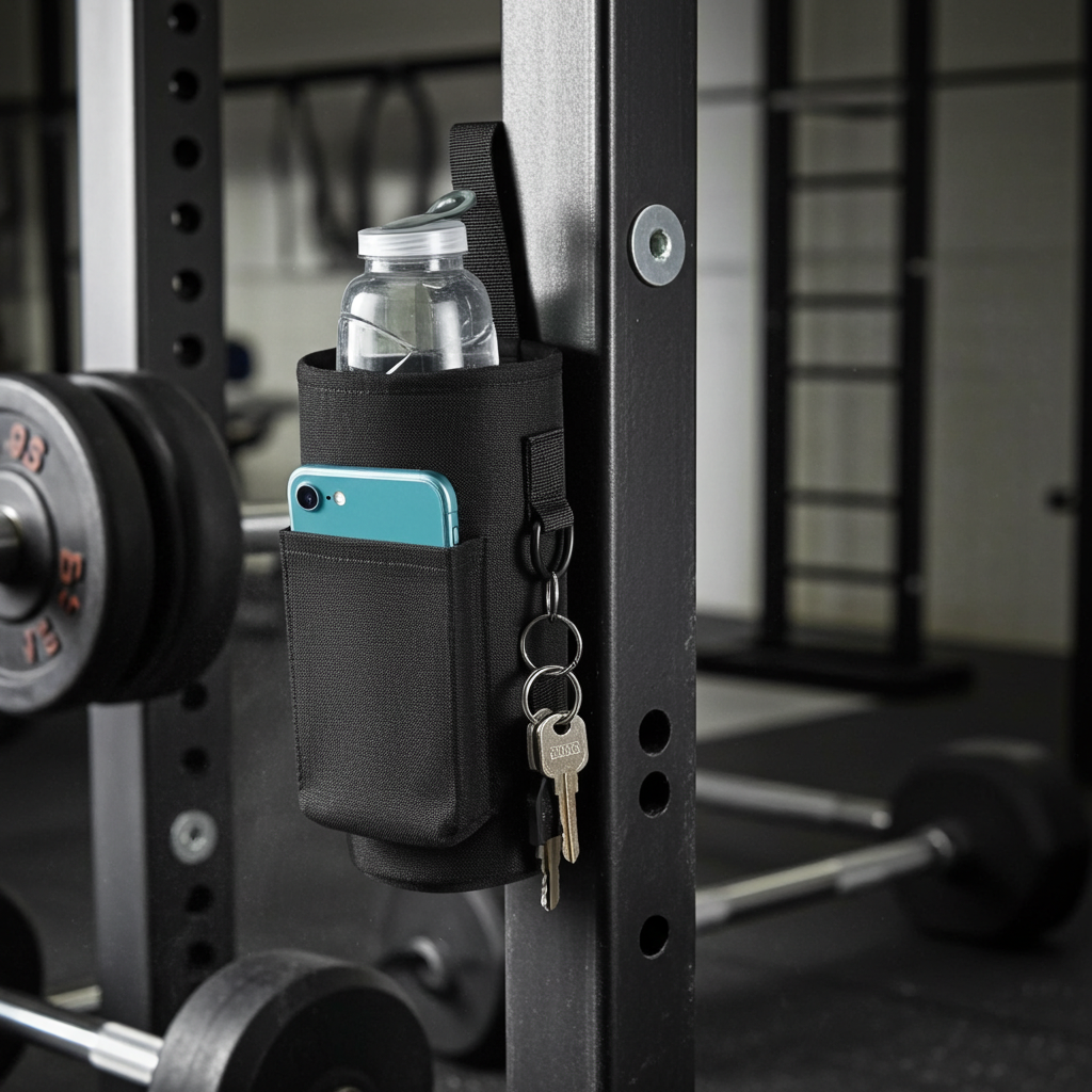 Ingen mer flaska på golvet eller bland vikter – ha allt nära och organiserat.